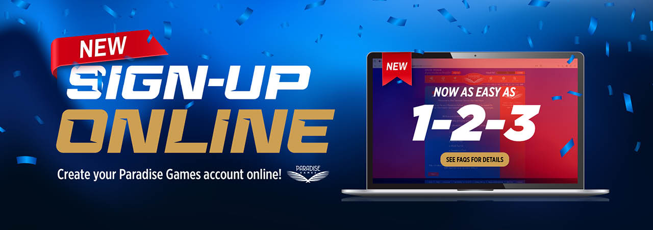 You can also visit any one of our Paradise Games locations for help with registering an account with us.